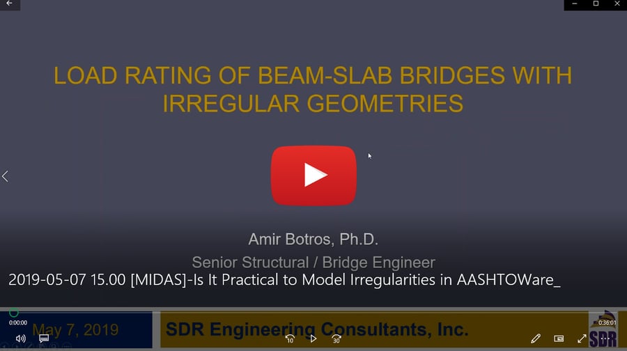Presentation Overview Beam-slab bridges with Irregular geometries cannot be analyzed using AASHTO approximate methods of analysis. Accordingly, it is impractical or cumbersome to load rate beam-slab bridges with irregular geometries using A...