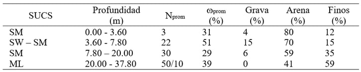 En la Tabla 5 se muestra el modelo geotécnico obtenido mediante las correlaciones empíricas descritas, el cual fue empleado para el diseño del sistema de contención, así como para el modelado numérico.